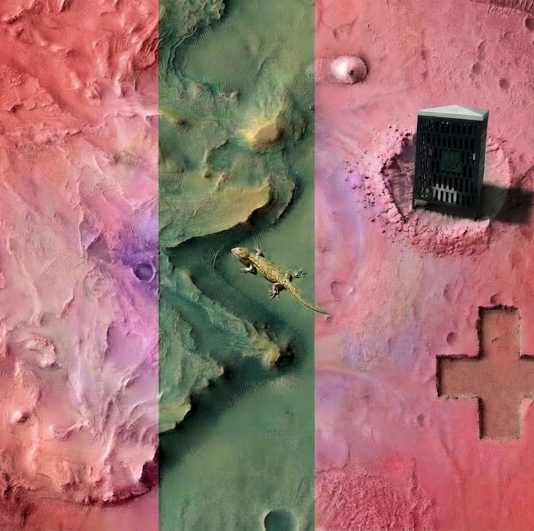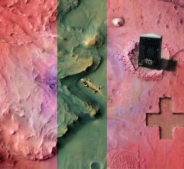 Life on Earth is under unprecedented threat, with species disappearing at alarming rates. At the same time, humanity is looking outward to Mars and beyond in search of life’s earliest traces. Red Bin is a site‑specific visual art project documenting extinct species through public, place‑based gestures and digital collage.